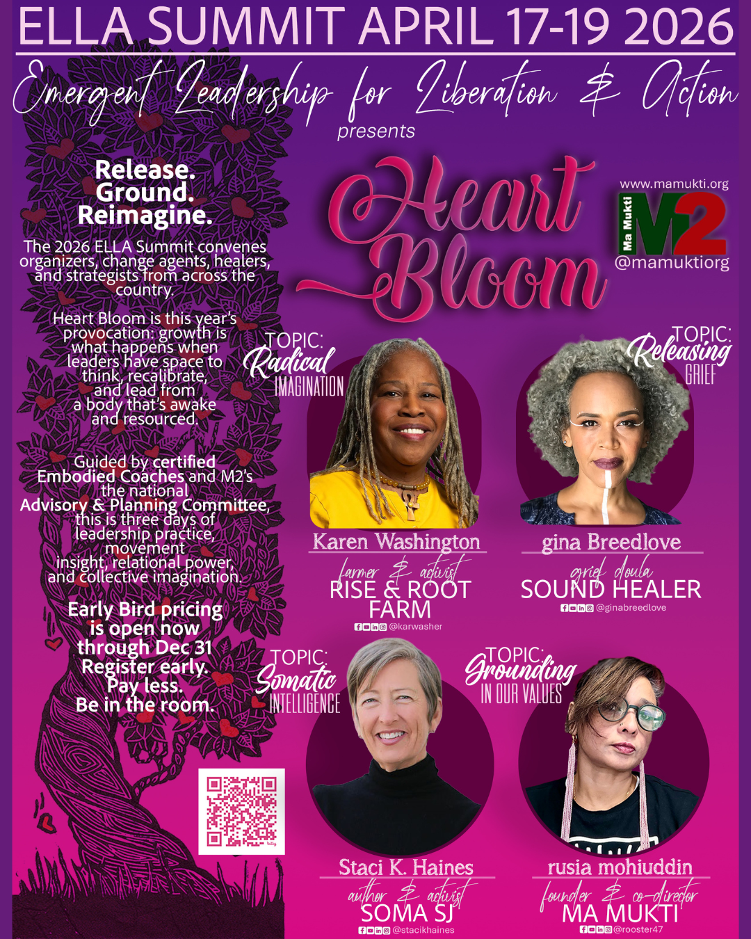With three days of immersive practice, somatic leadership tools, and a powerful community of women and gender-expansive leaders, the ELLA Summit 2026 offers a grounded and transformative space to reset, reconnect, and reimagine leadership. Hosted by Ma Mukti, this national gathering centers those on the frontlines of social, racial, economic, and climate justice—inviting them out of burnout and into sustainable, embodied leadership.